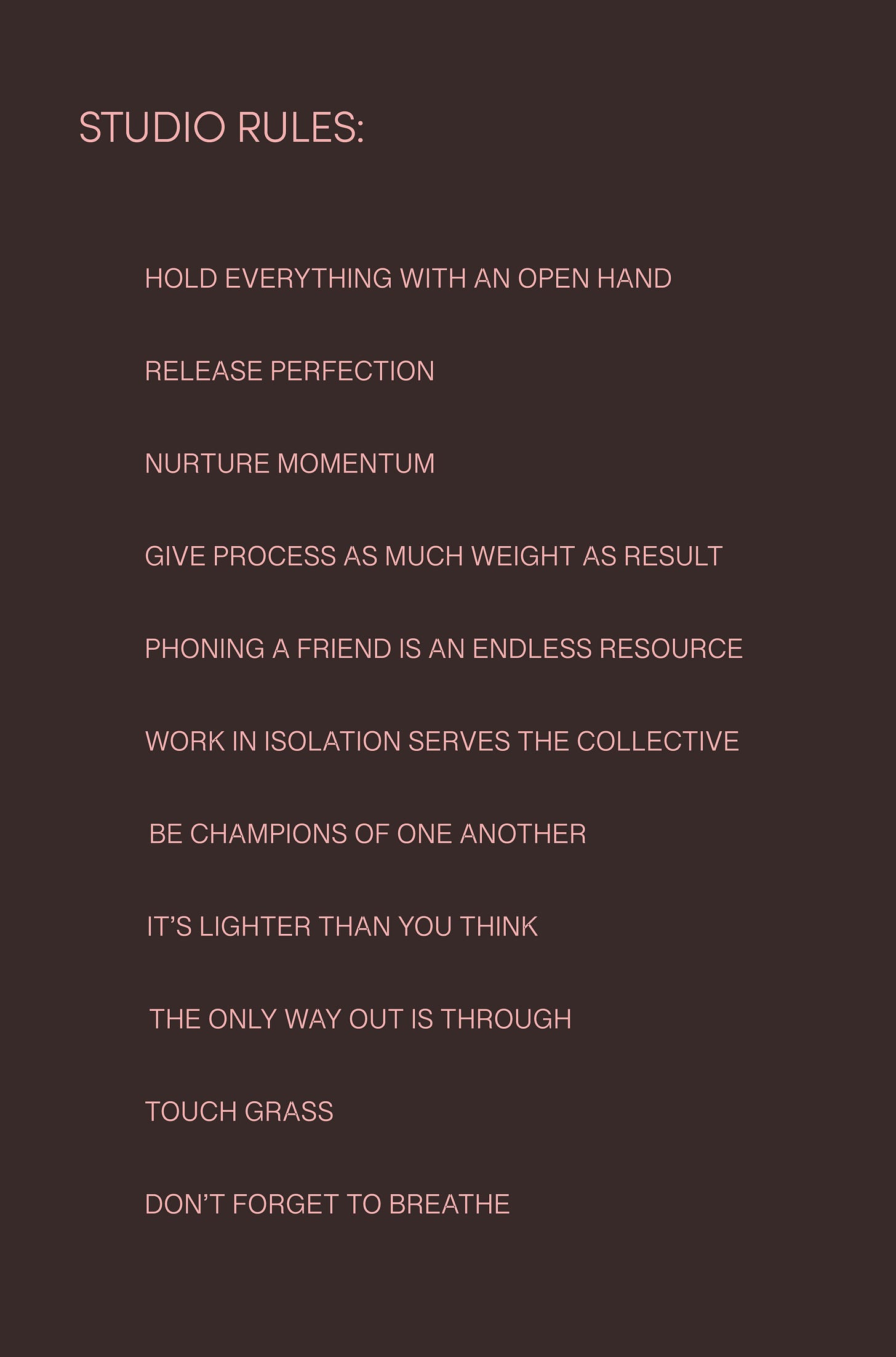 I am curious, what would you include in your studio rules? What feels like a guiding light to you? Please let me know. Until next time 💌
